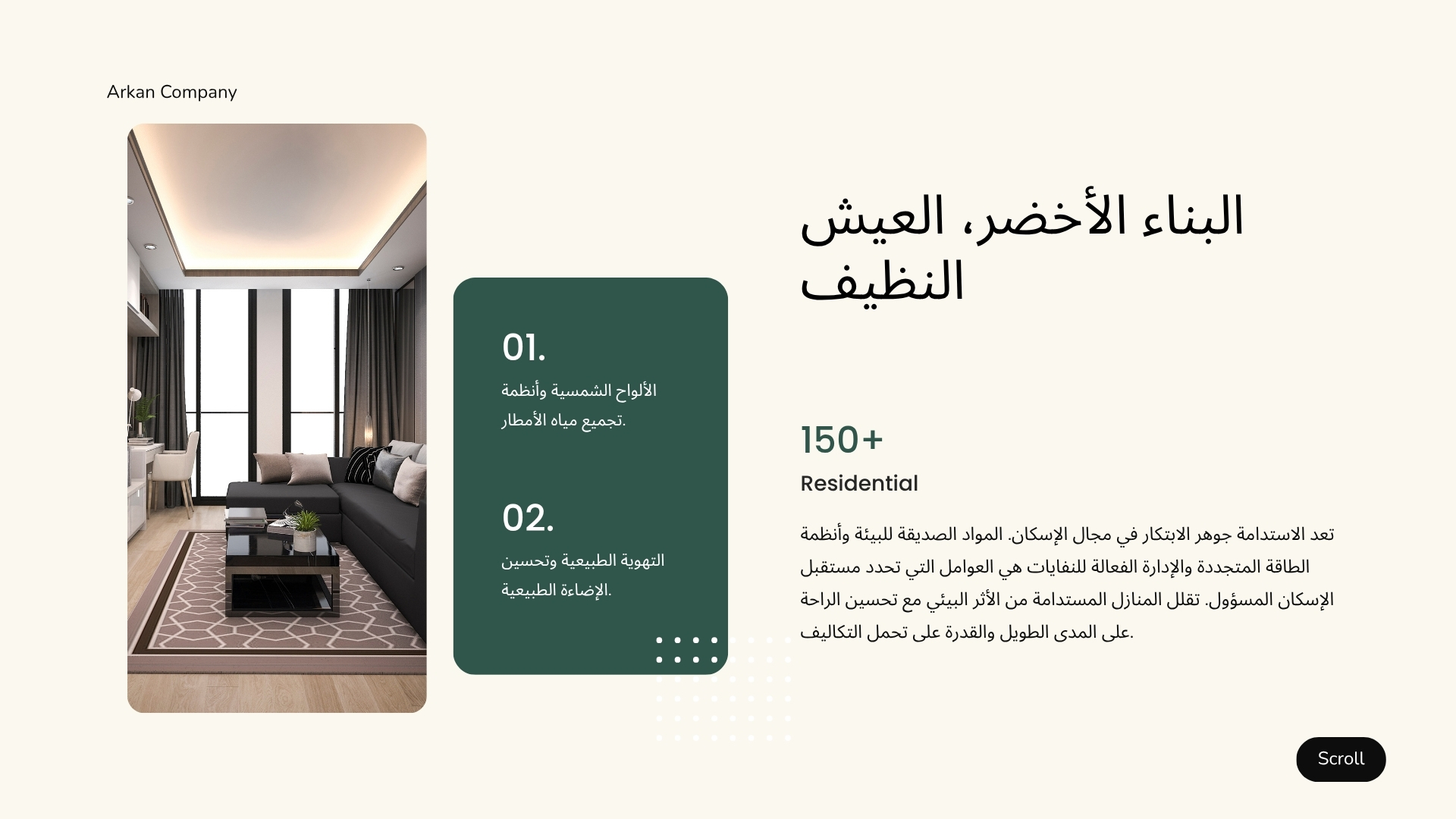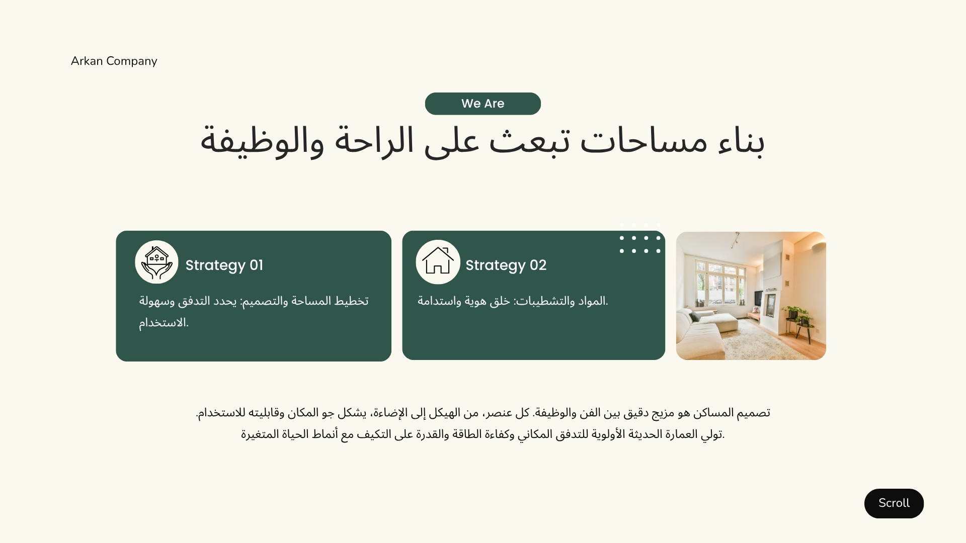 اركان واحدة من أكبر شركات التشطيب المعماري الفندقي في مصر، تأتي ريادتنا كنتيجة طبيعية لتكامل خدماتنا، نقدم كافة خدمات التصميم الداخلي والديكور للشقق والفلل والقصور جنباً لجنب مع خدمات الإشراف المعماري وتنفيذ بنود التشطيبات طبقاً للكود المصري، لوحات ومخططات هندسية معمارية لكافة بنود أعمال التشطيبات والإنشاءات، تصميم وتنفيذ كافة أعمال الأثاث المنزلي والمكتبي، المطابخ المنزلية بأنواعها، أعمال اللاندسكيب والتصميم الخارجي، حمامات السباحة، المصاعد المنزلية، التكييف المركزي والكونسيلد، كافة أعمال الديكورات الداخلية والخارجية، تشمل خدماتنا جميع كمبوندات ومناطق القاهرة الجديدة، التجمع الخامس، الشيخ زايد وأكتوبر، العاصمة الإدارية الجديدة، العبور والشروق وجمعية عرابي، مدينة طنطا، الدقي والزمالك والمهندسين، المعادي والقطامية، مدينة نصر ومصر الجديدة، الساحل الشمالي والعين السخنة.